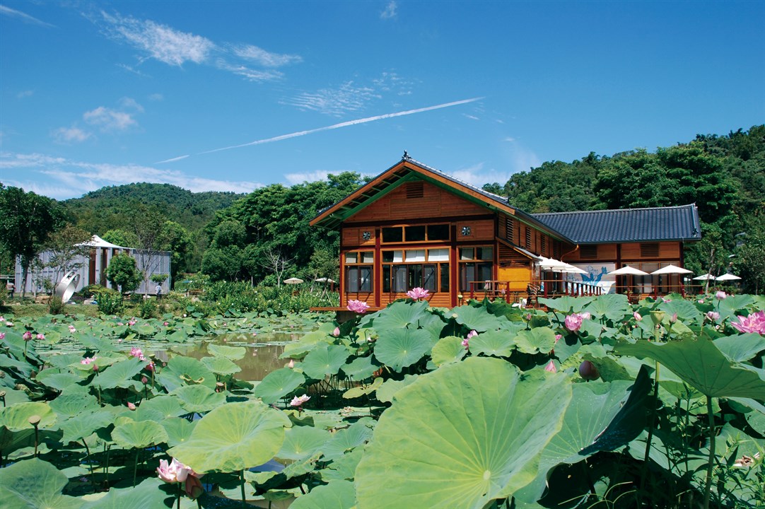 除了欣賞紙教堂、見學中心這兩棟風格迥異的建築之外,園區內種植各種誘蝶植物,各個角落可見蝶舞翩翩;兩旁的生態池,有著豐富的水生植物,夜間還能聽見此起彼落的蛙鳴;到了夏季,這裡成為最熱門的賞荷景點,一大片粉色的荷花隨風搖曳,在餐廳內邊享用美食邊賞美景,讓人度過最愜意的時光。