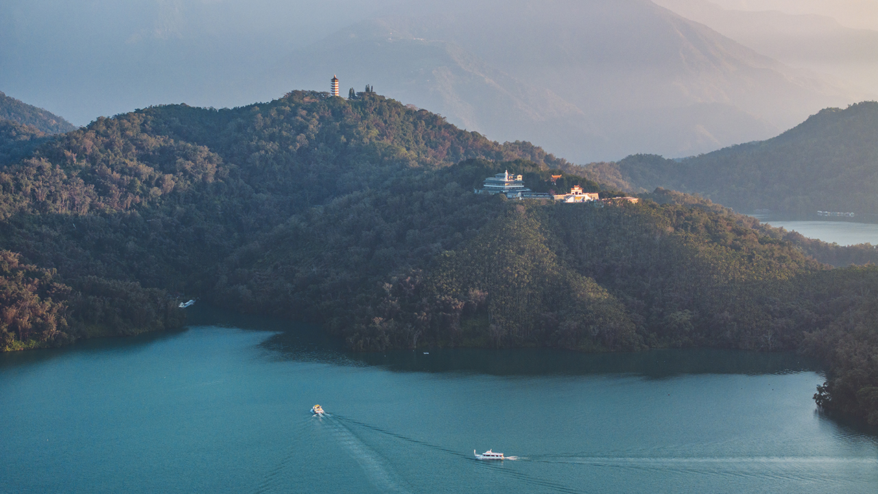 日月潭是臺灣最大的湖泊,風光旖旎秀麗。全潭以拉魯島(Lalu、光華島)為界,北半部形如日輪、南半部形如月鉤,因而得名。