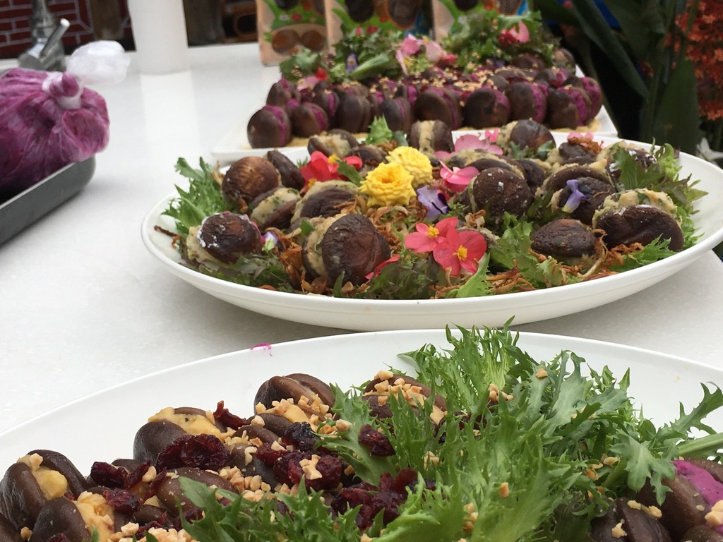 現代人にもシイタケのおいしさを味わってもらいたいと願っており、たくさんの創作料理を開発しています。例えばシイタケで作ったマカロンや、シイタケ入り魯肉飯など。いずれも行楽客に好評を博しています。