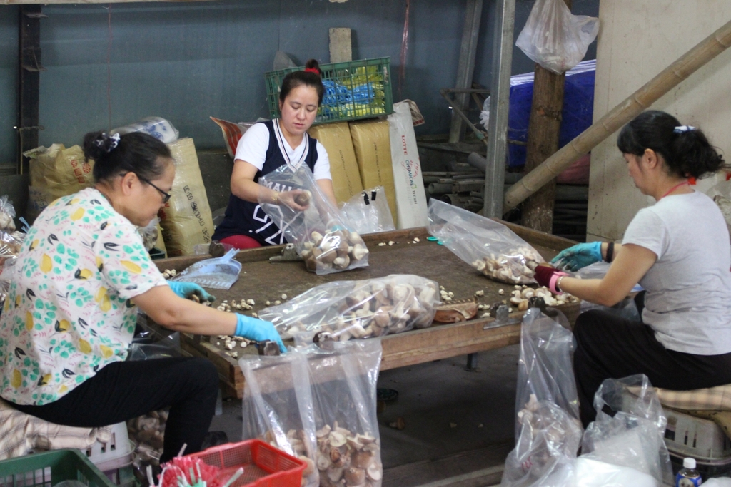 ここは東光村内に位置する農場で、女性オーナーはシイタケのヘルシー料理を推進しています。