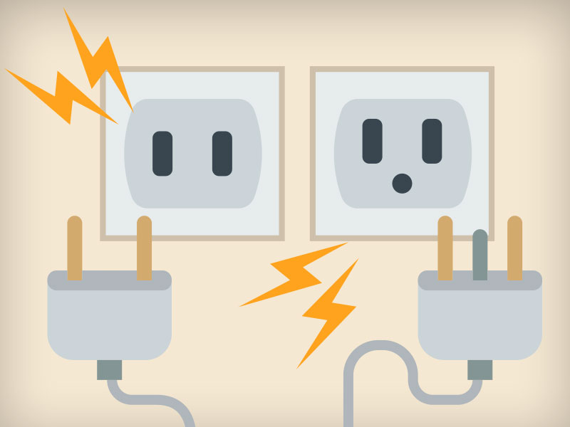 普段よく使われる電圧は110Vか220Vです。コンセント・プラグの形状は、2穴式と3穴式があります。