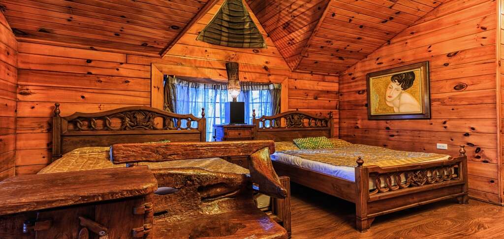 不同於早期民宿的經營,只提供簡單的床位,富豪群的主人林義人10多年前在這裡買下400多坪的土地,就已經決定將這裡建構成湖畔的雅緻小別墅,他認為:「在這麼美的湖泊旁,怎能不蓋個和日月潭氣質相當的旅店,讓旅人在此駐留就是一 種享受。」因此特地遠從美國進口原木,來建造這棟充滿人文藝術風味的渡假別墅。