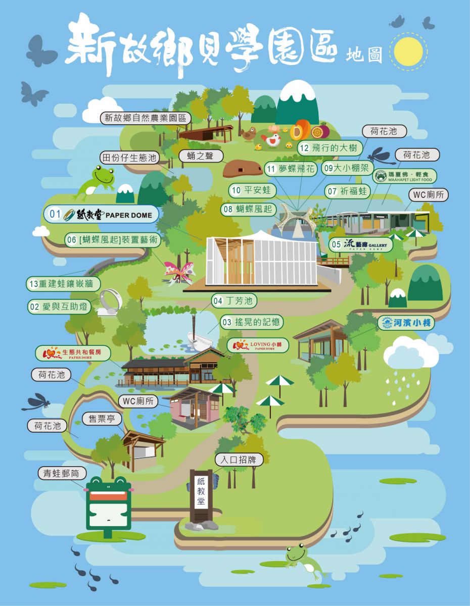 除了欣賞紙教堂、見學中心這兩棟風格迥異的建築之外,園區內種植各種誘蝶植物,各個角落可見蝶舞翩翩;兩旁的生態池,有著豐富的水生植物,夜間還能聽見此起彼落的蛙鳴;到了夏季,這裡成為最熱門的賞荷景點,一大片粉色的荷花隨風搖曳,在餐廳內邊享用美食邊賞美景,讓人度過最愜意的時光。