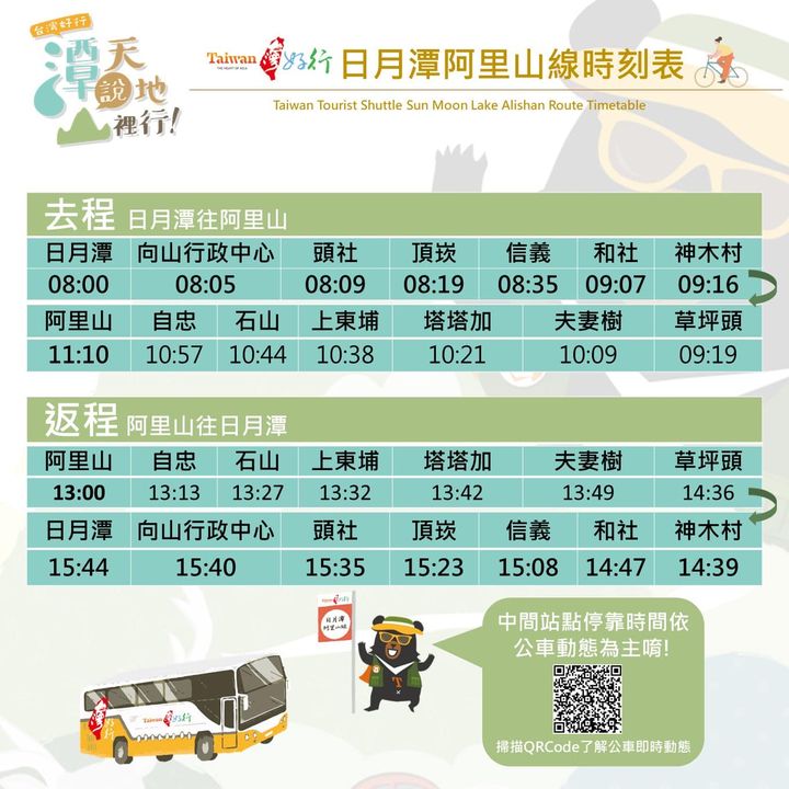 訊息內容 #留言處有禮 #台灣好行日月潭-阿里山線 開行囉🎉🎉🎉 想一次暢遊日月潭阿里山兩大國際級風景區嗎❓ 來搭台灣好行日月潭阿里山線就對了🙌 📍免自駕最輕鬆👍 📍沿途欣賞新中橫公路山林之美 📍必看!夫妻樹絕美天際線 📍探訪塔塔加獼猴家族萌萌出沒 即日起至2025年8月31日,搭配刷電子票證搭好行活動 往返票價只要296元📣📣📣 年末來趟放鬆身心靈之旅 來搭台灣好行日月潭阿里線吧❗ 相關照片 回列表