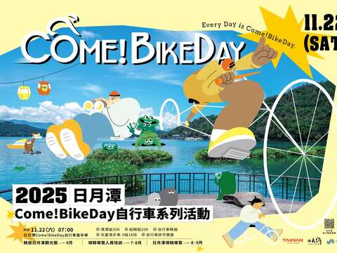今年的日月潭 Come!BikeDay 自行車嘉年華,我們把湖光、山色、自行車、祈福、好物、任務、趣味全部串在一起,享受屬於日月潭的秋季騎行慶典。