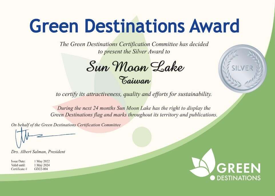 因應氣候變遷全球暖化所帶來的生存危機,「永續」已成為全球各產業共同發展目標,如何透過日常行動落實永續與系統化管理,使產業在經濟蓬勃發展下均能兼顧,更是時下最熱門的議題。交通部觀光局日月潭國家風景區管理處(以下簡稱「日管處」)三年多來的積極投入,於今(111)年5月獲得由荷蘭綠色旅遊目的地基金會所主辦的「綠色旅遊目的地國際認證(Green Destinations Awards / Certification)肯定,取得「綠色旅遊目的地認證 銀質獎」,用行動為疫後觀光新局奠定根基!