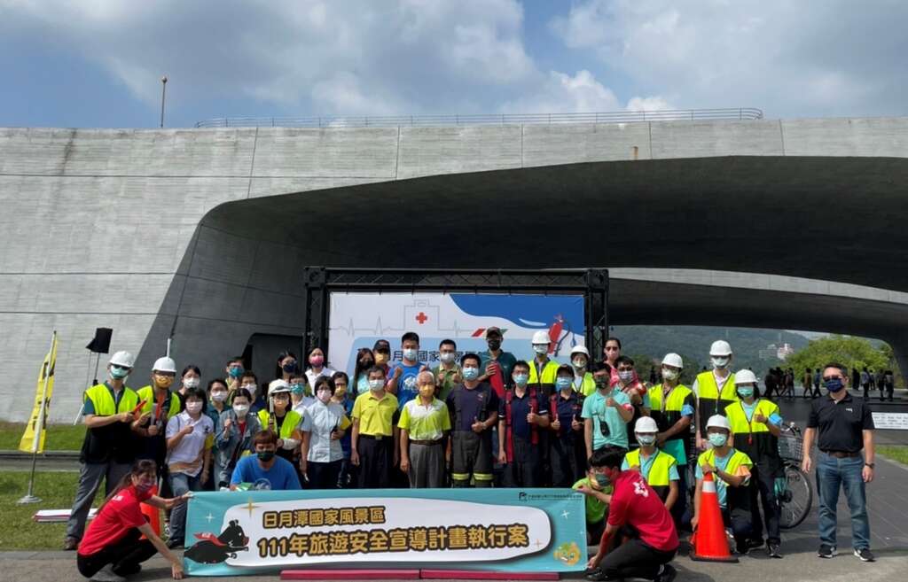 交通部觀光局日月潭國家風景區管理處轄區內包含許多類型的遊憩景點,比如自行車、水域活動、登山健行...等等,尤其曾獲CNNgo推薦為全球10大最美的水上自行車道更是車友打卡拍美照的聖地,在這遊客眾多的情況下,日月潭國家風景區管理處同仁的安全防救操練就顯得非常重要。為此,邀請南投縣消防局第二大隊日月潭分隊與管理處自衛消防編組同仁合作辦理風景區大型活動安全演練,模擬觀光活動可能遇到的緊急狀況。