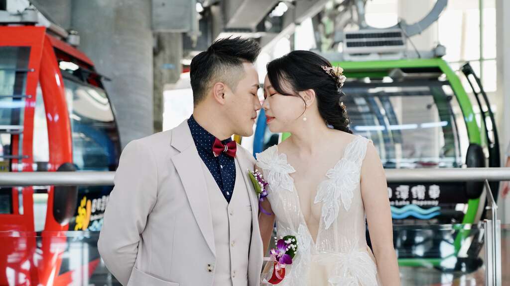 今年特別選定10月7日黃道吉日,新人們在長官及貴賓的見證下,在建築優美的向山遊客中心完成終生大事,在風景秀麗的日月潭永結同心,活動更將婚禮規劃為「日月同心,愛妳愛你」的陸海空3D婚禮,過程中更搭配遊湖以及纜車巡禮,象徵在未來的日子一起攜手相伴。