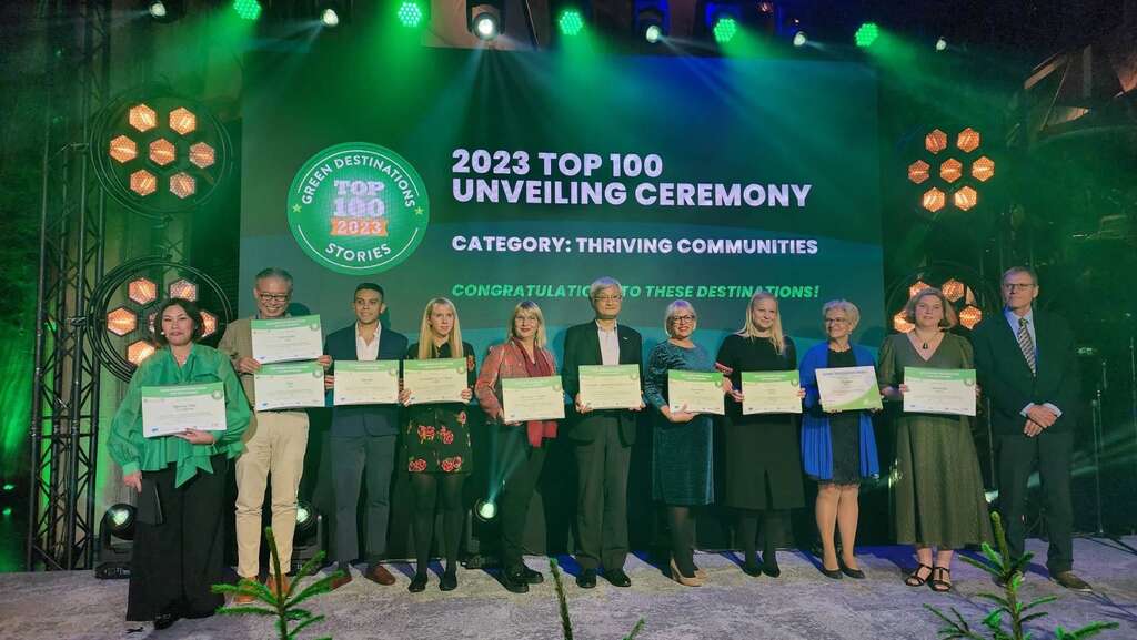 2023全球綠色目的地年會(Global Green Destinations Day Conference)於10月8日在歐洲綠色之都愛沙尼亞塔林(Tallinn, Estonia)盛大舉辦,並於當地時間10月9日晚會頒發「2023全球百大目的地故事獎」(2023 Green Destinations Top 100 Stories),本年度臺灣再次嶄露頭角,共計6個目的地加入綠色目的地比賽與認證計畫並全數獲獎,由交通部觀光署駐法蘭克福辦事處主任謝長明領獎,為8年來臺灣最多目的地參與競賽的一年,獲獎數也較2022年增加一倍,成為本年度綠色目的地年會的焦點。