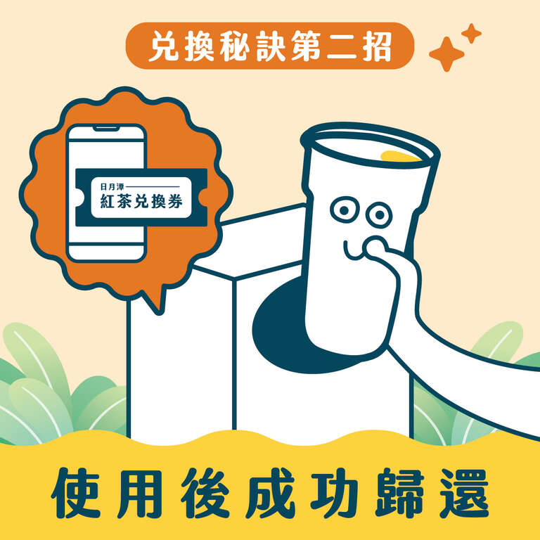 凡是在日月潭借用循環杯並購買飲料,成功歸還後就可獲得免費再喝一杯冰涼的紅茶兌換券!來日月潭遊玩,消暑解渴又替我們環境減少一次性容器的汙染,給你大大的Respect 💯!