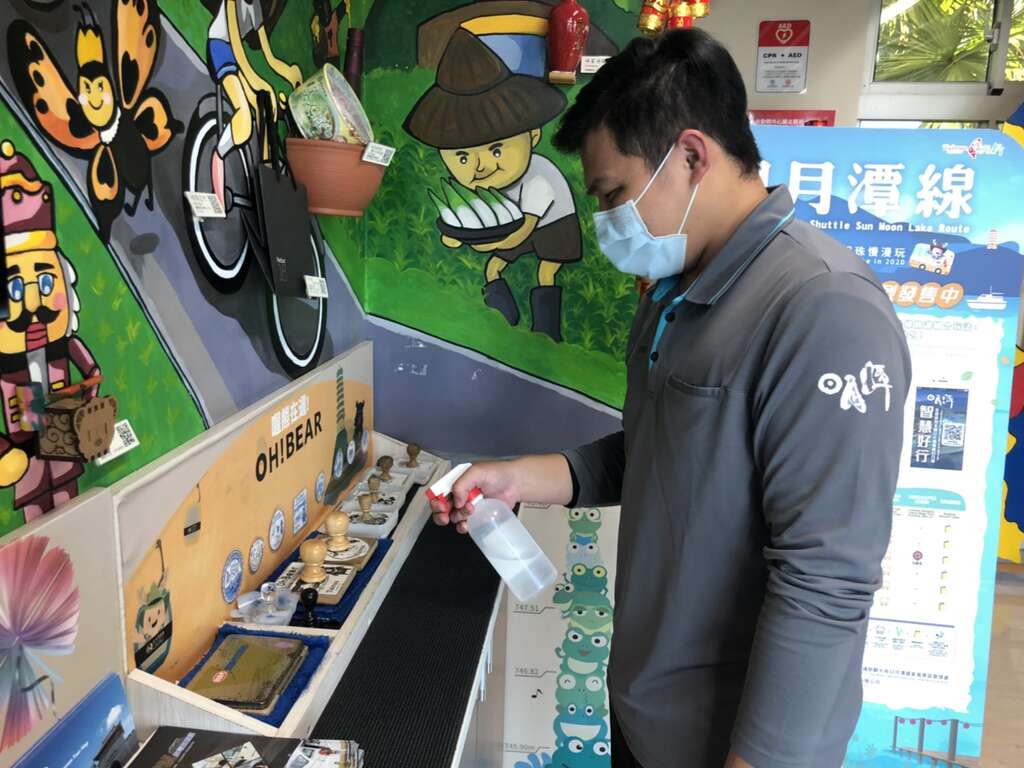 到日月潭乘船遊湖及各重要委外經營據點,是必玩、必逛的遊程,日管處要求轄內南投縣渡船遊艇商業同業公會、南投縣日月潭綠能電動遊憩協會、重要轉運點、自行車服務站及餐飲等經營業者,務必做好防疫措施;載客船舶部分由日管處提供消毒水要求船艙全面消毒,委外經營據點業者提供乾洗手液或消毒酒精,服務人員配戴口罩,以降低傳染風險為目標。