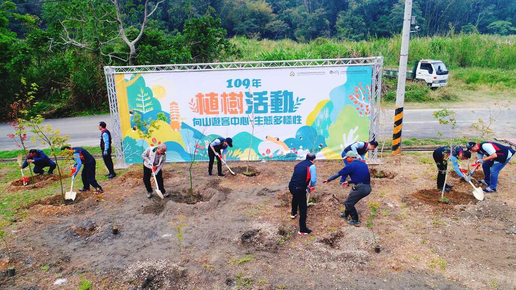 近期武漢肺炎防疫的緊張氛圍,讓大家神情焦慮,響應2020年3月12日植樹節,交通部觀光局日月潭國家風景區管理處(下稱日管處)與行政院農業委員會林務局南投林區管理處(下稱南投林區管理處)在向山遊客中心前往月牙灣步道的入口端,共同舉辦「109年日月潭向山遊客中心-生態多樣性植樹活動」,持續推廣植樹造林、環境觀光永續的理念。