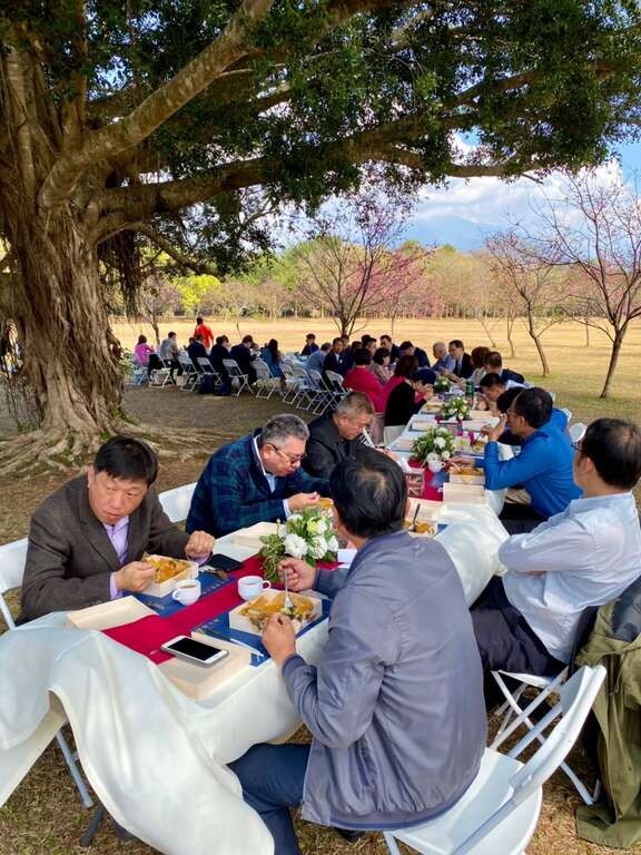 因正值暨大櫻花季,揭牌儀式後與會貴賓也參與了暨大櫻花餐桌會,持續交流凝聚共識。櫻花餐桌會由暨大創業育成中心進駐廠商暨大行旅所提供,餐食與服務皆由在暨大行旅就業之暨大畢業校友所研發設計,菜單設計大量使用在地特色食材,如刺蔥、馬告、栗子南瓜、茭白筍等,透過特色餐食活動企劃,展現日月潭觀光圈打造精緻高端旅遊體驗及暨大與在地產業充分合作在地實踐行動。